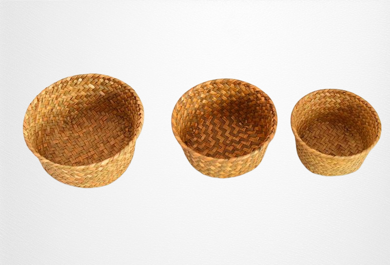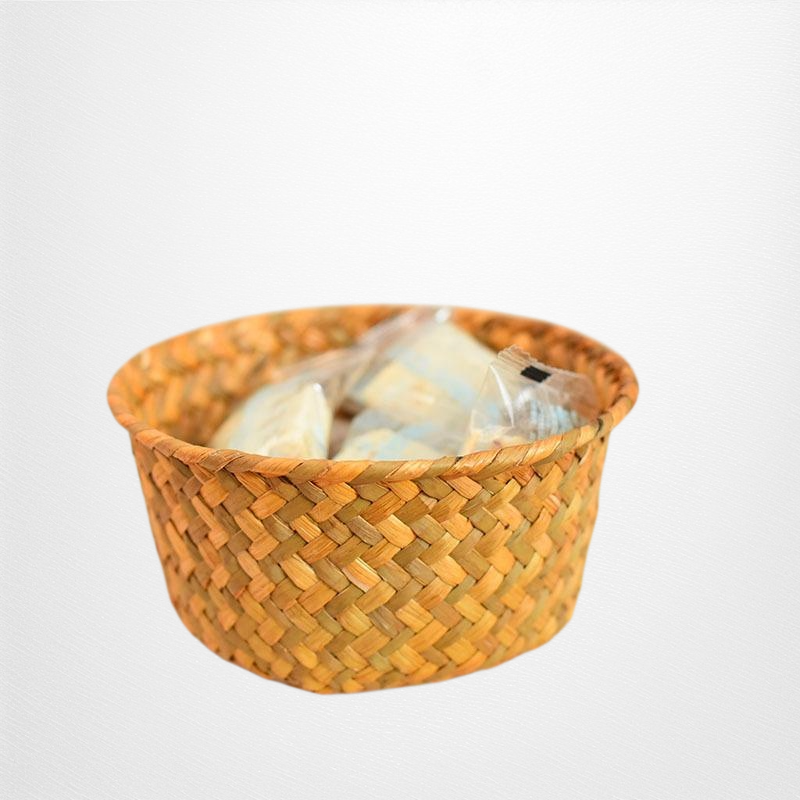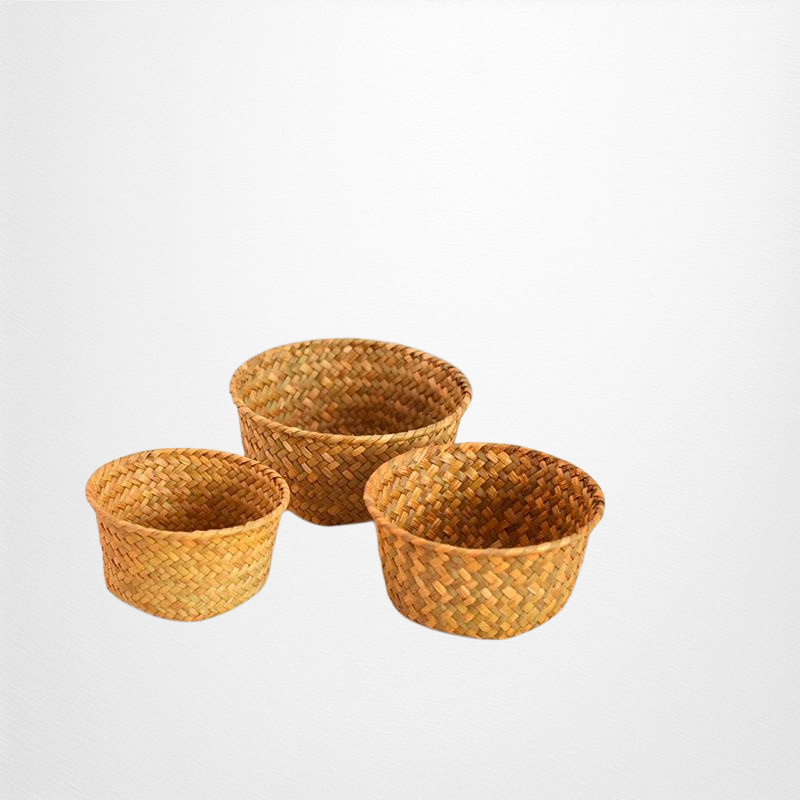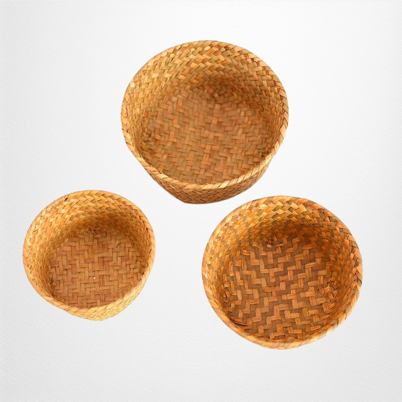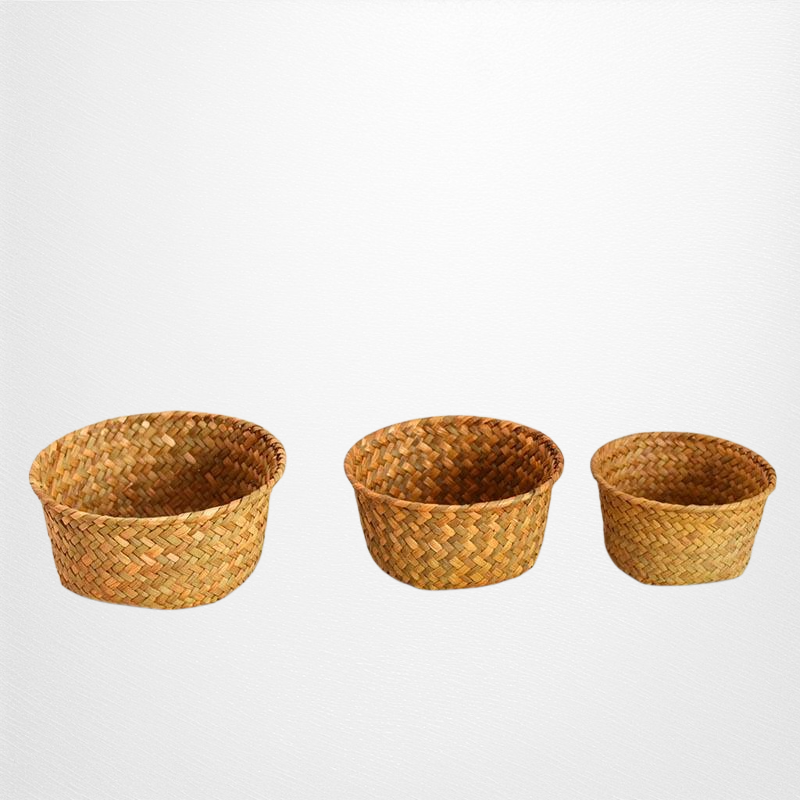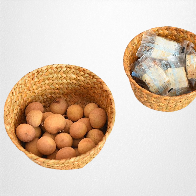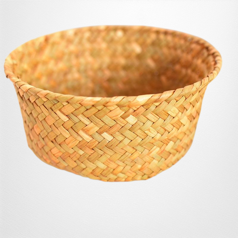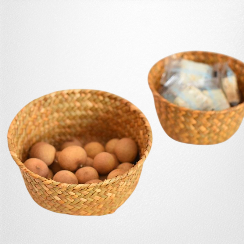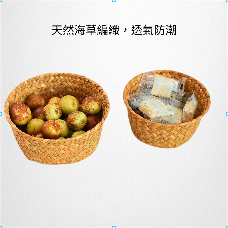 天然海草編織,環保無異味,透氣設計防潮防霉,適合收納生薑大蒜等廚房食材,小巧圓形方便擺放,提升收納效率。