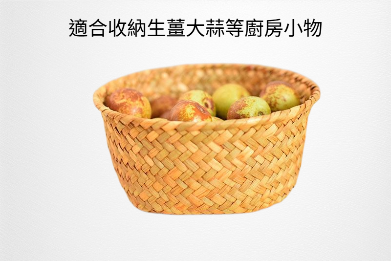 天然海草編織收納籃 廚房生薑大蒜儲物小圓籃