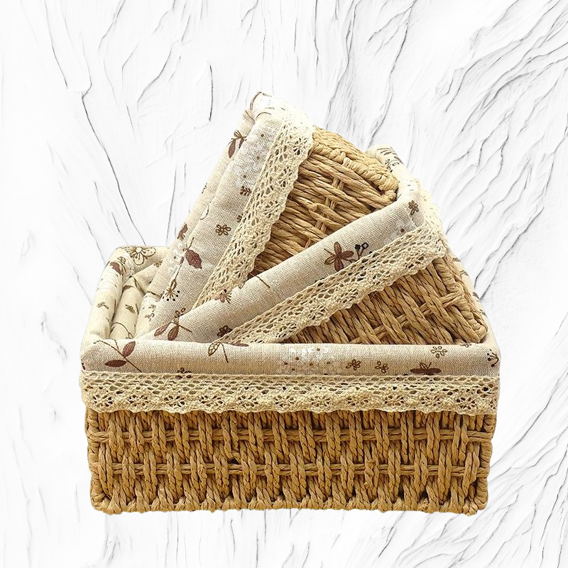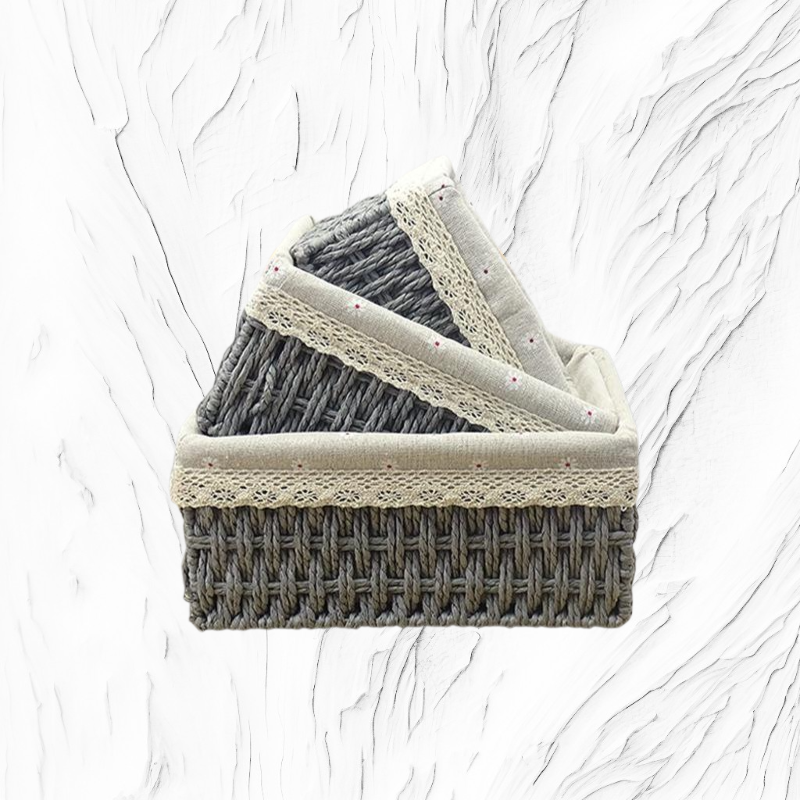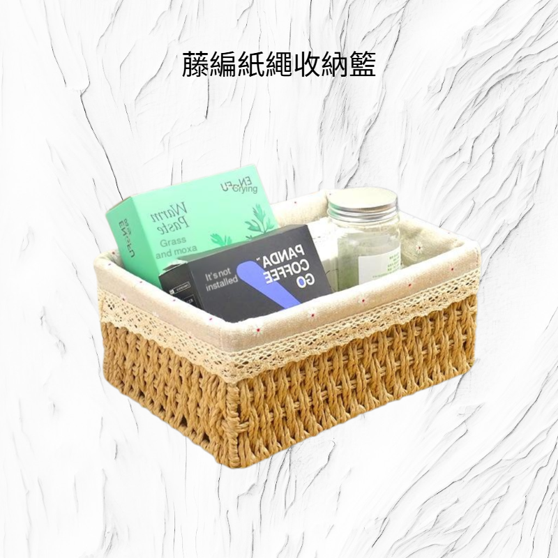 藤編紙繩收納籃,手工編織設計,適合桌面雜物、零食分類收納,輕巧耐用,家用多功能整理,提升空間整潔感。