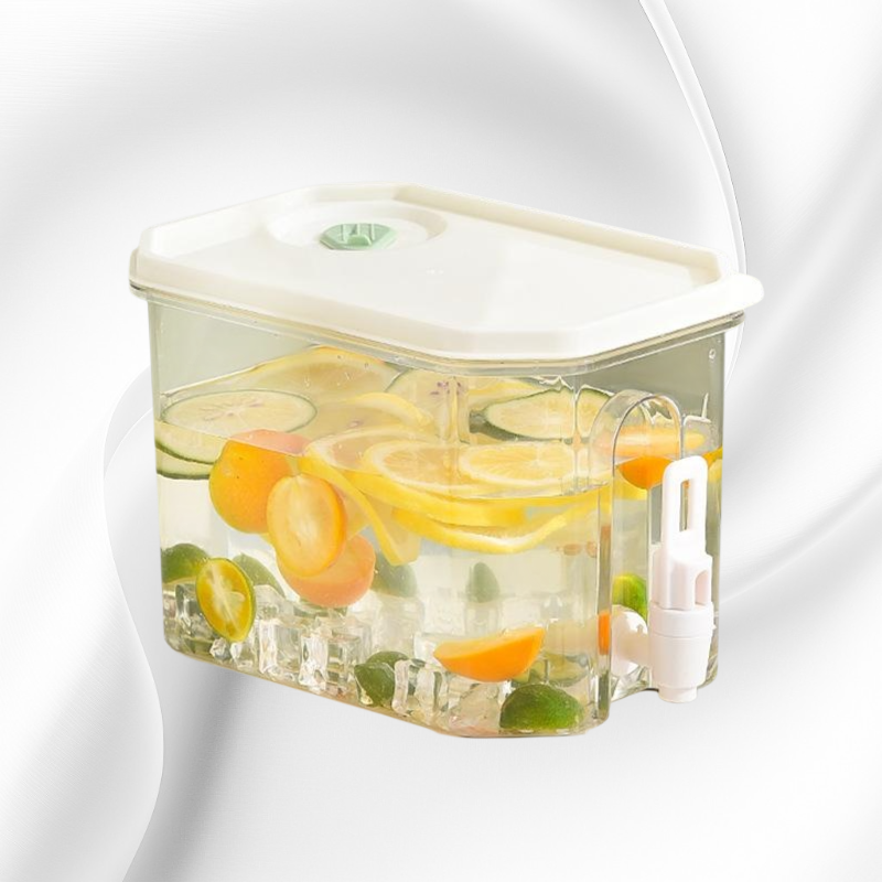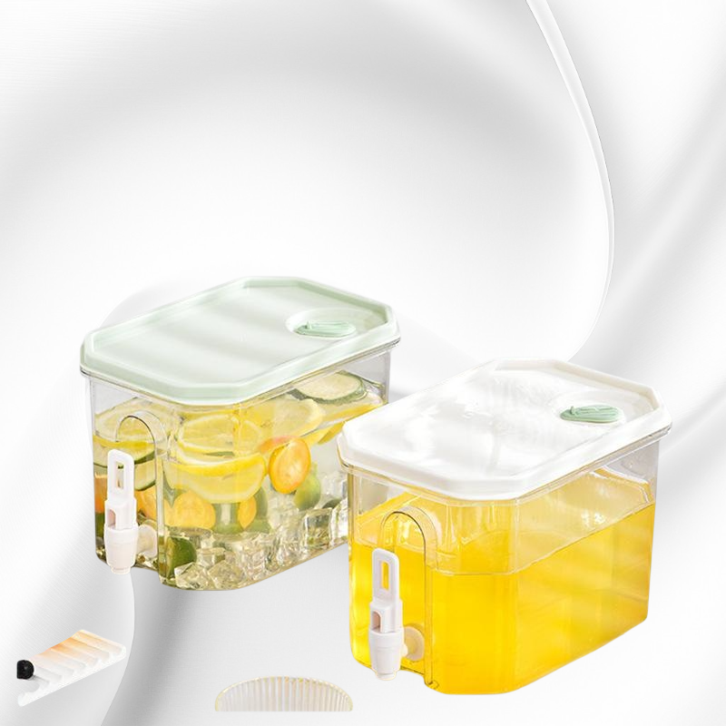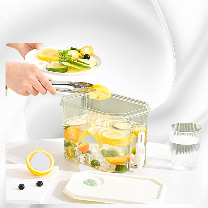 高顏值大容量冷水壺,附龍頭設計,方便取水。適用冰箱存放,適合夏季水果茶、飲品冷藏,耐用材質易清洗。